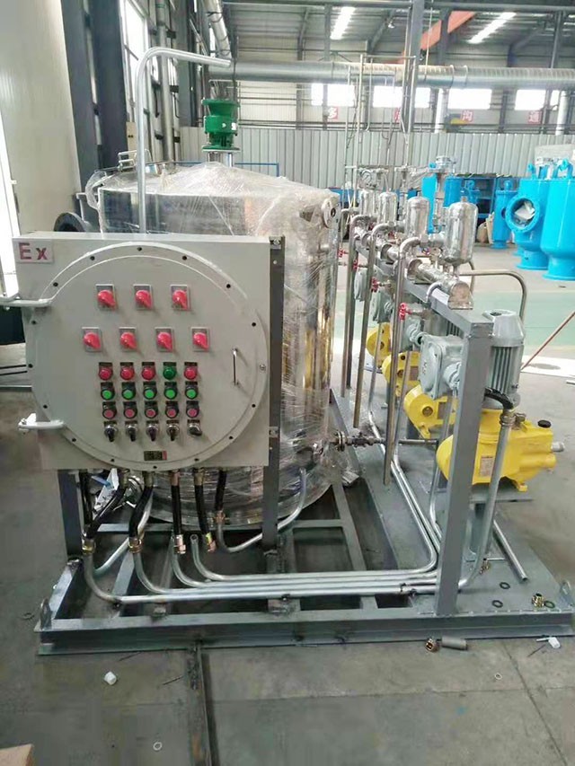 加藥系統是一套完整的設備,配料,混合,液體的輸送,在一個自動控制,原水,水,油田鍋爐,廣泛應用于發電廠集輸脫水處理系統,石油化工各種加藥系統和廢水處理系統。作為混凝劑,磷酸鹽,氨,石灰水,緩蝕劑,阻垢劑,劑等。加藥裝置主要由攪拌罐,溶液箱,計量泵,管道閥門,在機電一體化設備電氣控制柜組合平臺。